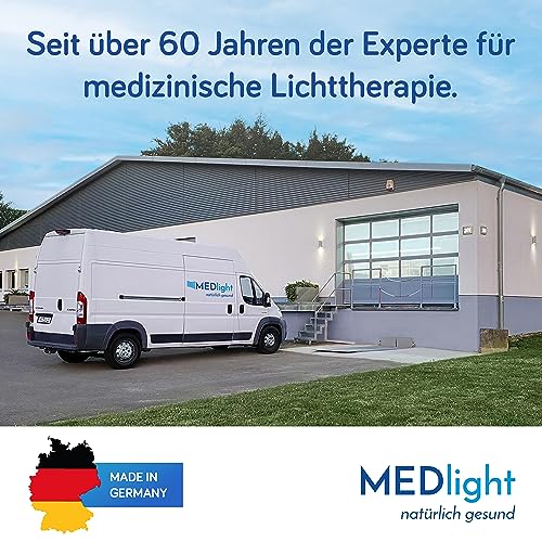 • ☼MADE IN GERMANY: Seit über 60 Jahren forscht und entwickelt MEDlight innovative Produkte im Bereich der medizinischen Lichttherapie in Deutschland – Sicherheit & Wirksamkeit stehen dabei an erster Stelle.