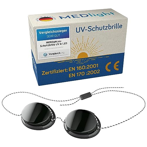 • ☼VIELSEITIG EINSETZBAR: Mit der hochwertigen Schutzbrille ist die Sicherheit Ihrer Augen beim Arbeiten mit UV/LED/Laser Licht gewährleistet. Auch für die Anwendung bei Vitamin D Lampen, LED-Lampen sowie bei der Lichttherapie ist die UV-Brille optimal geeignet.
